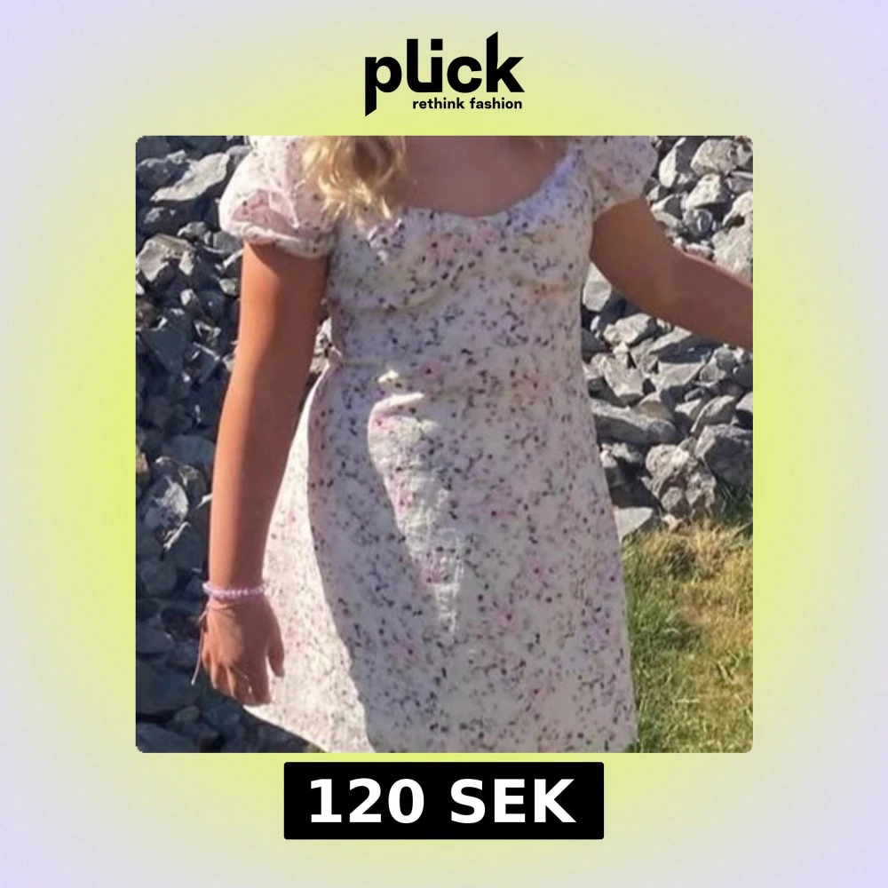 Charmig blommig klänning från H&M i ljusa färger. Den har puffiga kortärmar och en smockad överdel som ger en söt och feminin look. Perfekt för sommarens varma dagar. dragkedja på sidan