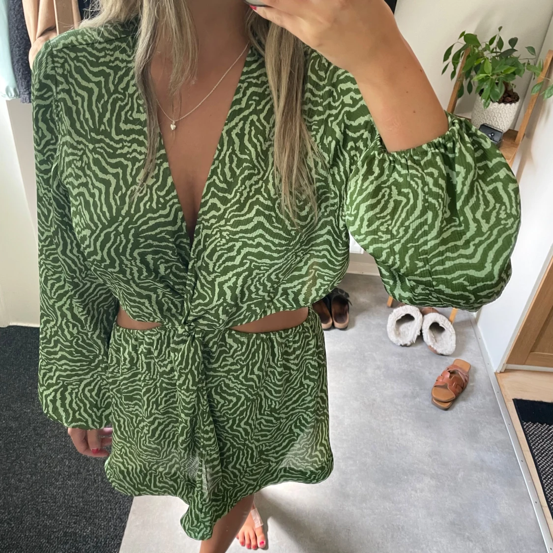 Grön kortklänning med zebra-mönster