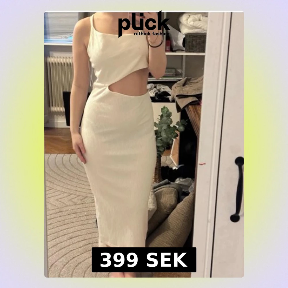 Trendig vit långklänning i ribbat material med smala axelband och snygg cut out-detalj vid midjan. Klänningen har en kroppsnära passform och är perfekt för dig som vill sticka ut med en modern look.