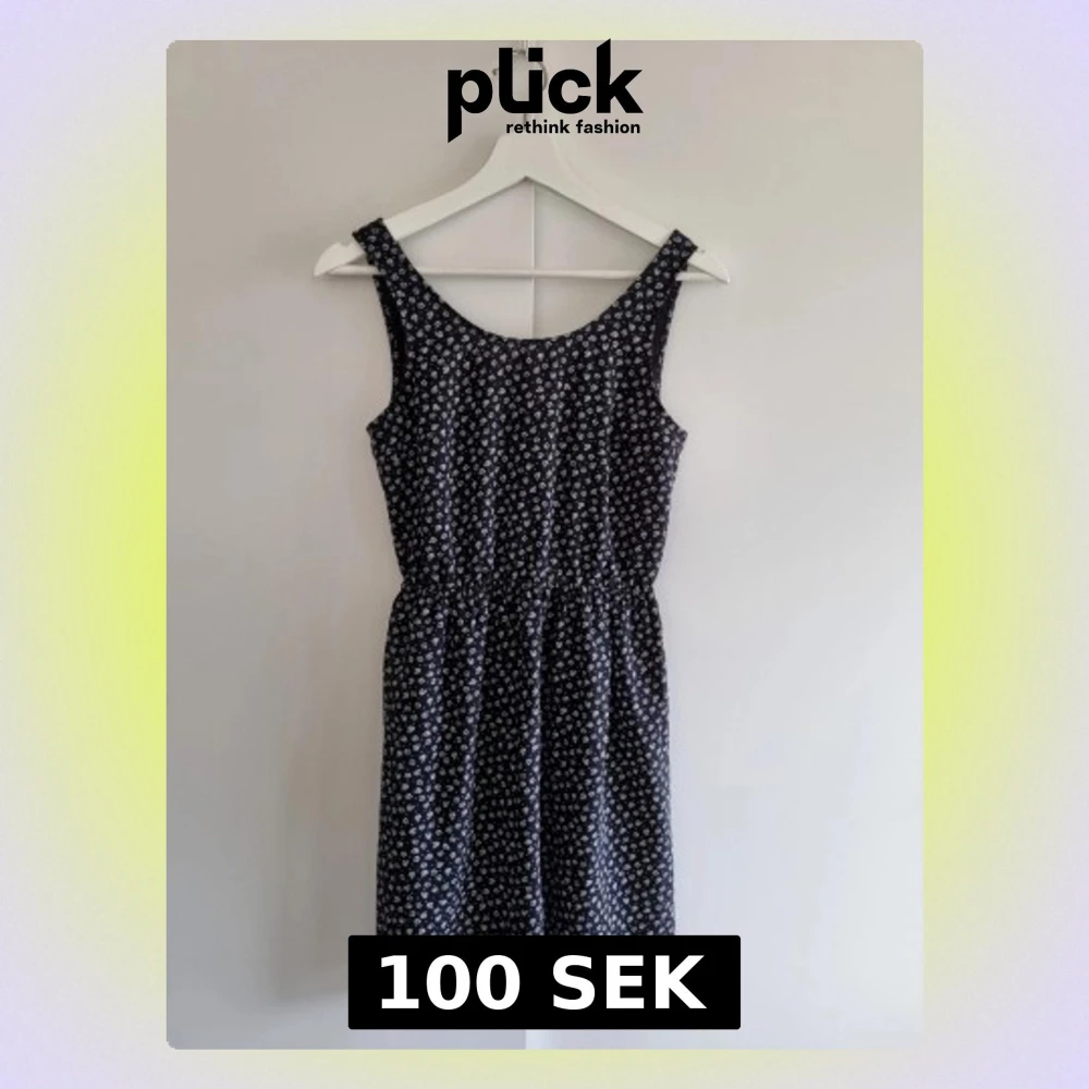 Söt klänning med små vita blommor och cut out på ryggen. Klänningen har rundad halsringning och resår i midjan för en bekväm passform. Perfekt skick.