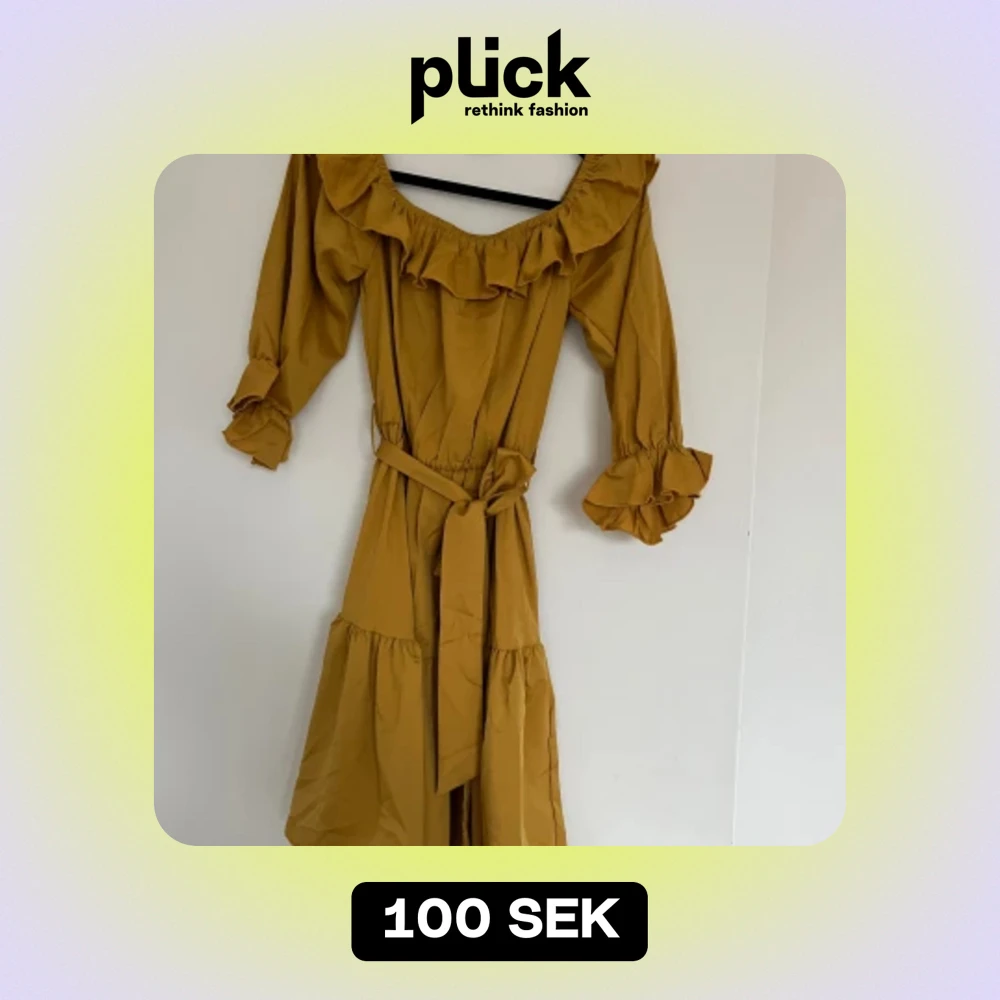 Här har vi en vacker och unik klänning till både festligheter och vardagslivet. Har en lite Touch av champagne färg och guld. Ett band runt som du kan knyta hårt om du vill att det ska sitta lite tightare. Fin modell vid axlarna och armarna.