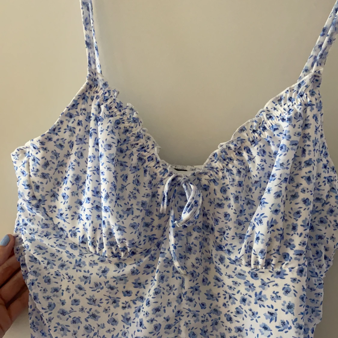 En jättefin kortare blommig klänning, tajtare modell med scrunch på sidorna, fram och bak. Endast använd en gång. Nyskick!!