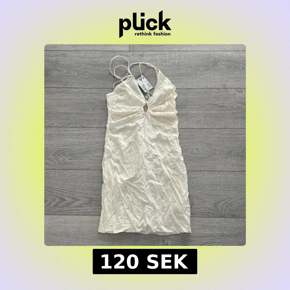 Säljer en elegant vit klänning med en v-ringad design och en dekorativ detalj framtill. Klänningen har en kort längd och är perfekt för sommarens festligheter. Materialet är mjukt och följsamt, vilket ger en bekväm passform.