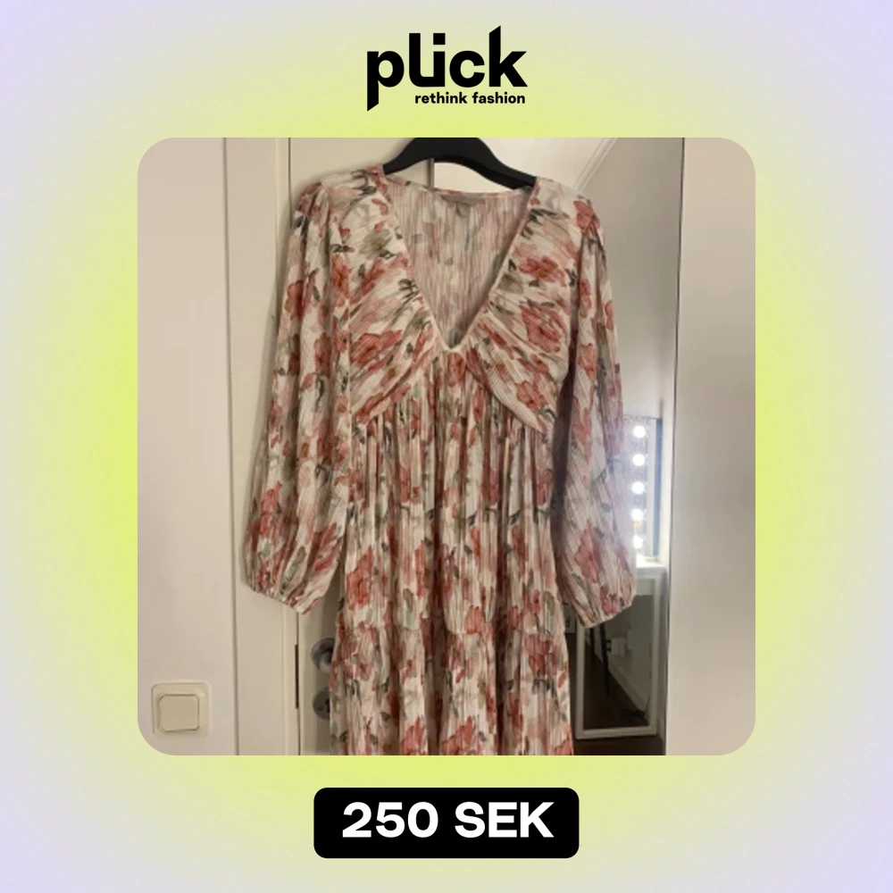 Jättefin blommig klänning från H&M . Endast använd en gång alltså i nyskick. Skriv för frågor eller om ni vill ha fler bilder.