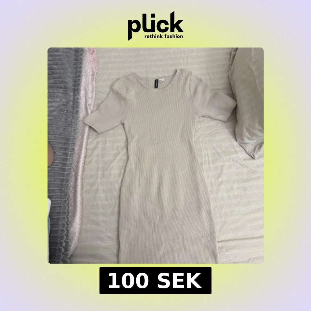 Superfin beige ribbad klänning från H&M med kort ärm och rund halsringning. Klänningen är figurnära, knappt använd.