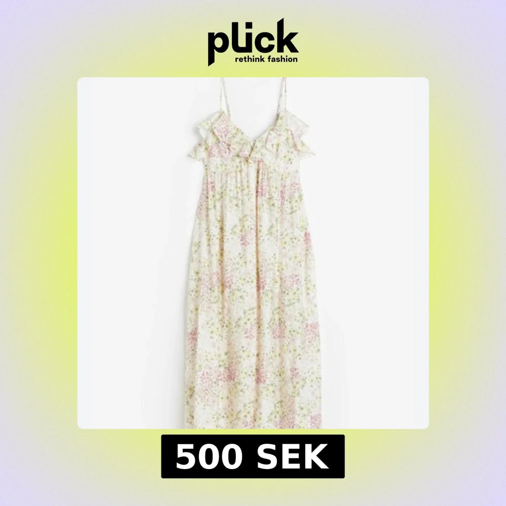 Söt långklänning med blommigt mönster i ljusa färger. Klänningen har smala axelband, volangdetalj vid urringningen och en luftig passform. Perfekt för varma dagar och somriga tillfällen. 💕💕