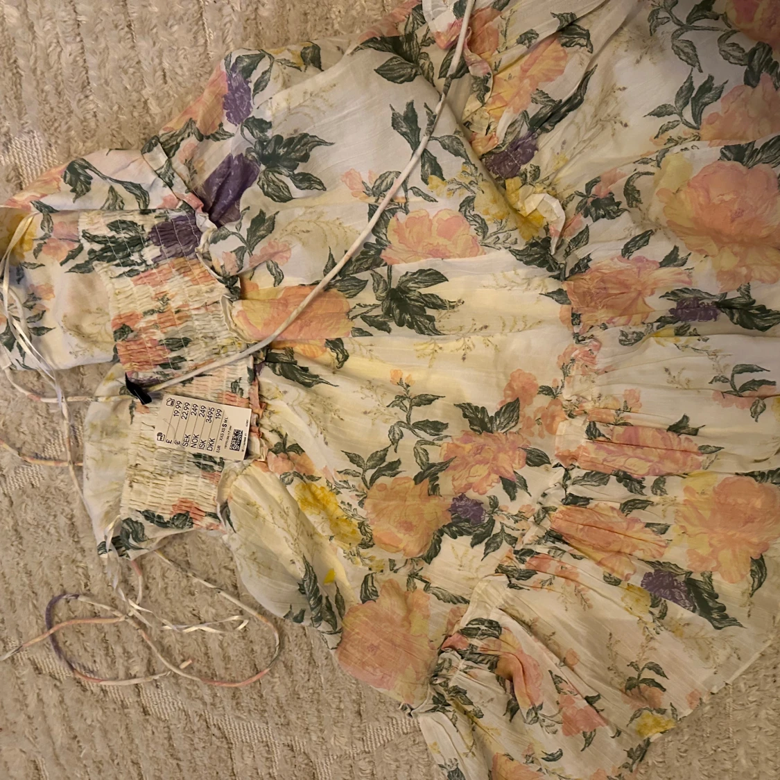 Supersöt kortklänning med blommigt mönster i pastelliga toner av rosa, gul och lila. Klänningen har smala axelband, omlottkänsla vid bysten och volangdetaljer. Perfekt för sommarens alla tillfällen!