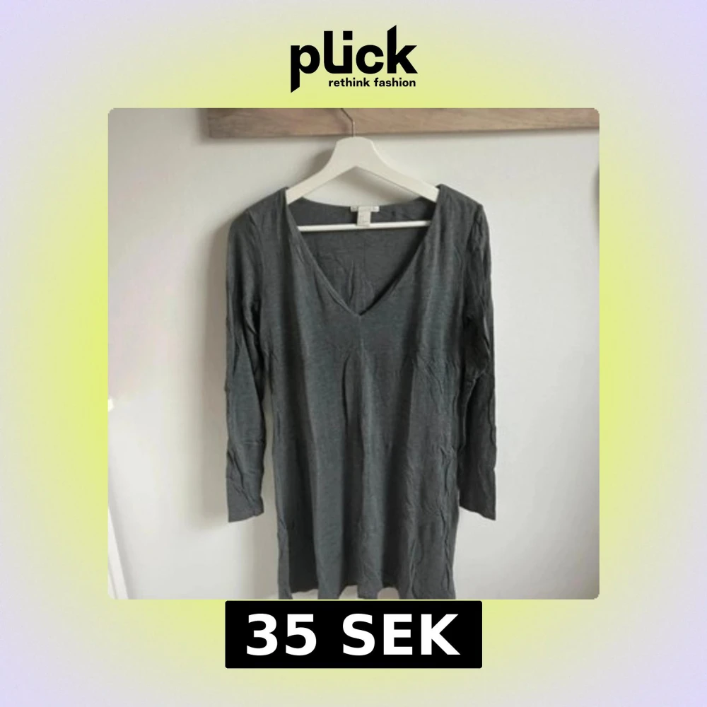 Enkel och stilren grå klänning från H&M Basic i storlek S. Klänningen har lång ärm, v-ringning och är tillverkad i mjuk bomullsmix. Perfekt för dig som gillar minimalistisk och bekväm stil.