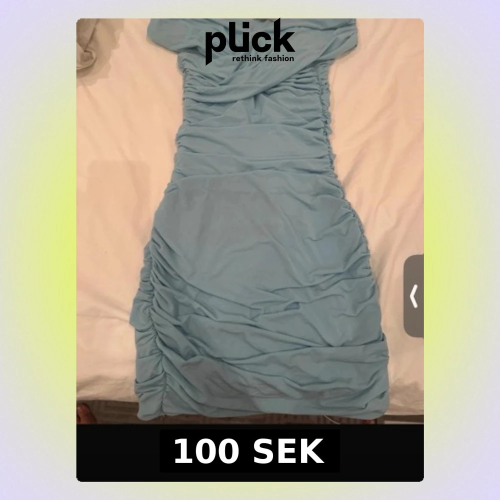 Supersnygg ljusblå kortklänning med offshoulder-design och draperade detaljer längs hela klänningen. Tight passform som framhäver figuren och ger en trendig look. Perfekt för dig som vill sticka ut lite extra. Materialet känns mjukt och stretchigt.