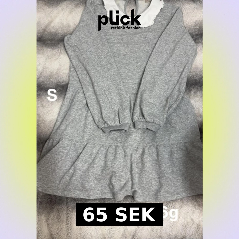 Supersöt grå klänning med volangkjol och lång ärm. Har en vit, söt krage med volangkant och knapp i nacken. perfekt för dig som gillar en gullig och avslappnad stil.🌸Fint använt skick. Rymlig Storlek s