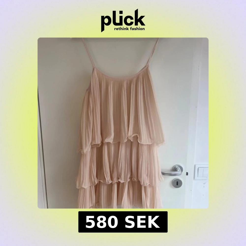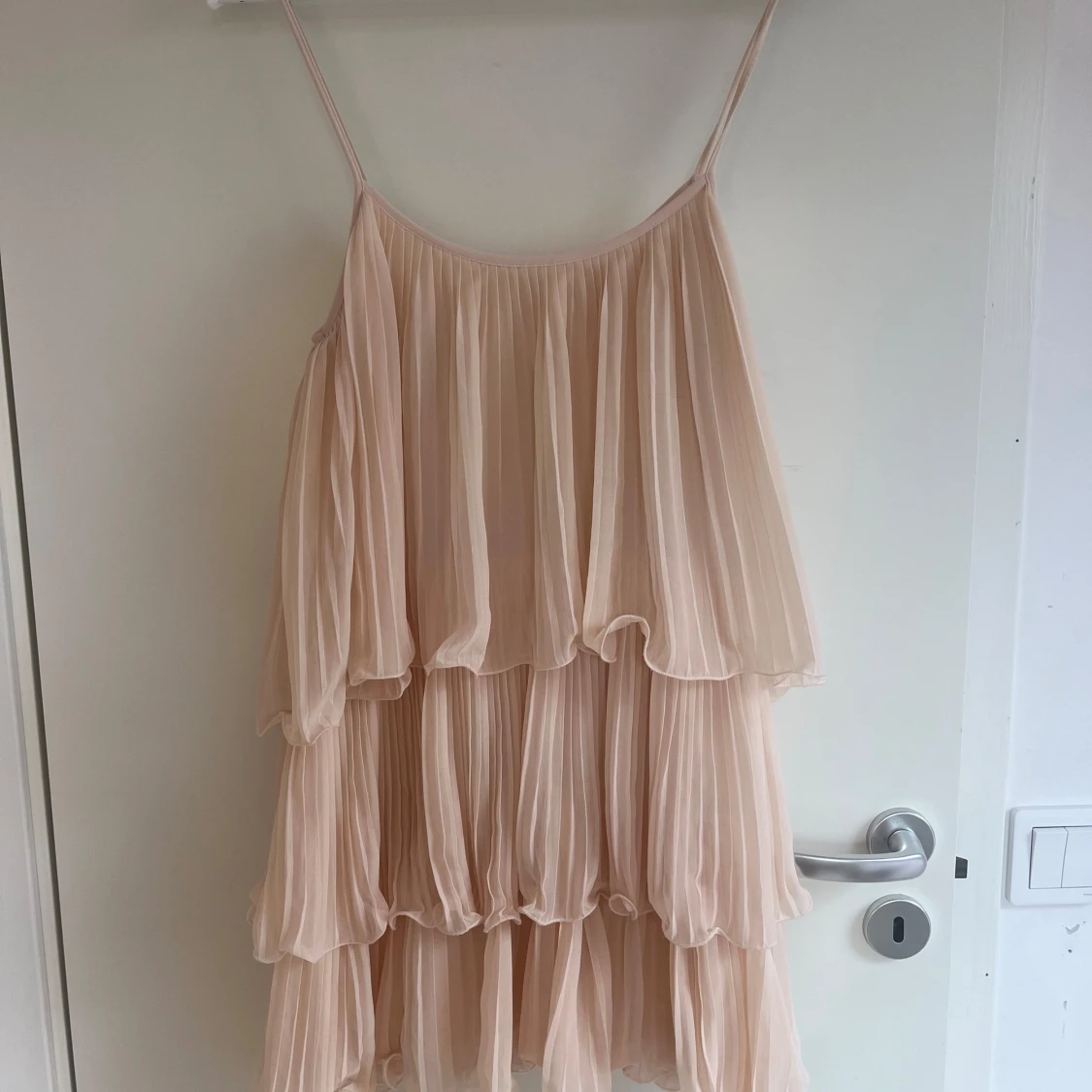 Fin kort volangklänning från hm. Storlek M, passar bra på S också. Beige/ krämfärgad. Bra skick!