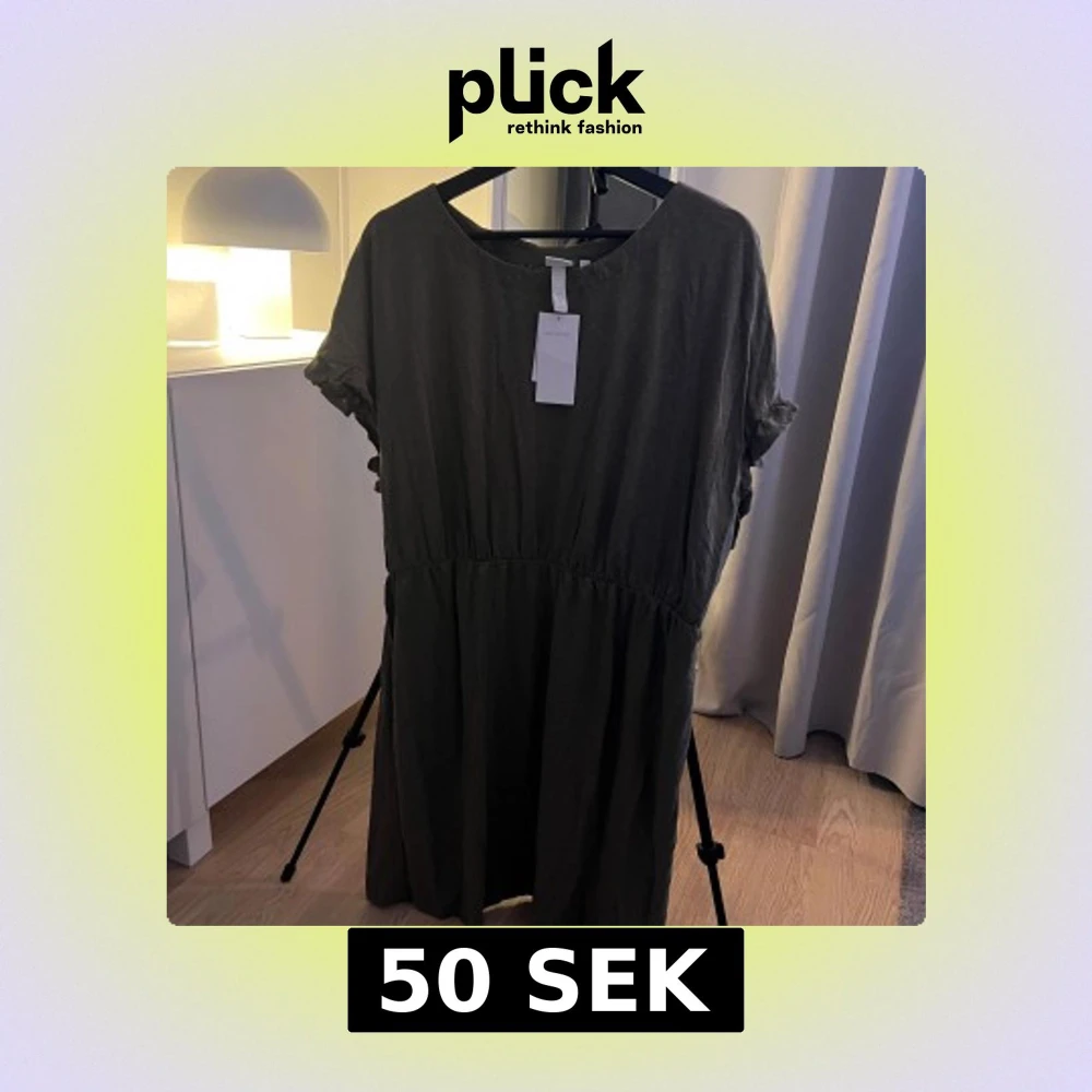 Mörkgrön klänning med korta ärmar. Avslappnad passform. Strl XL