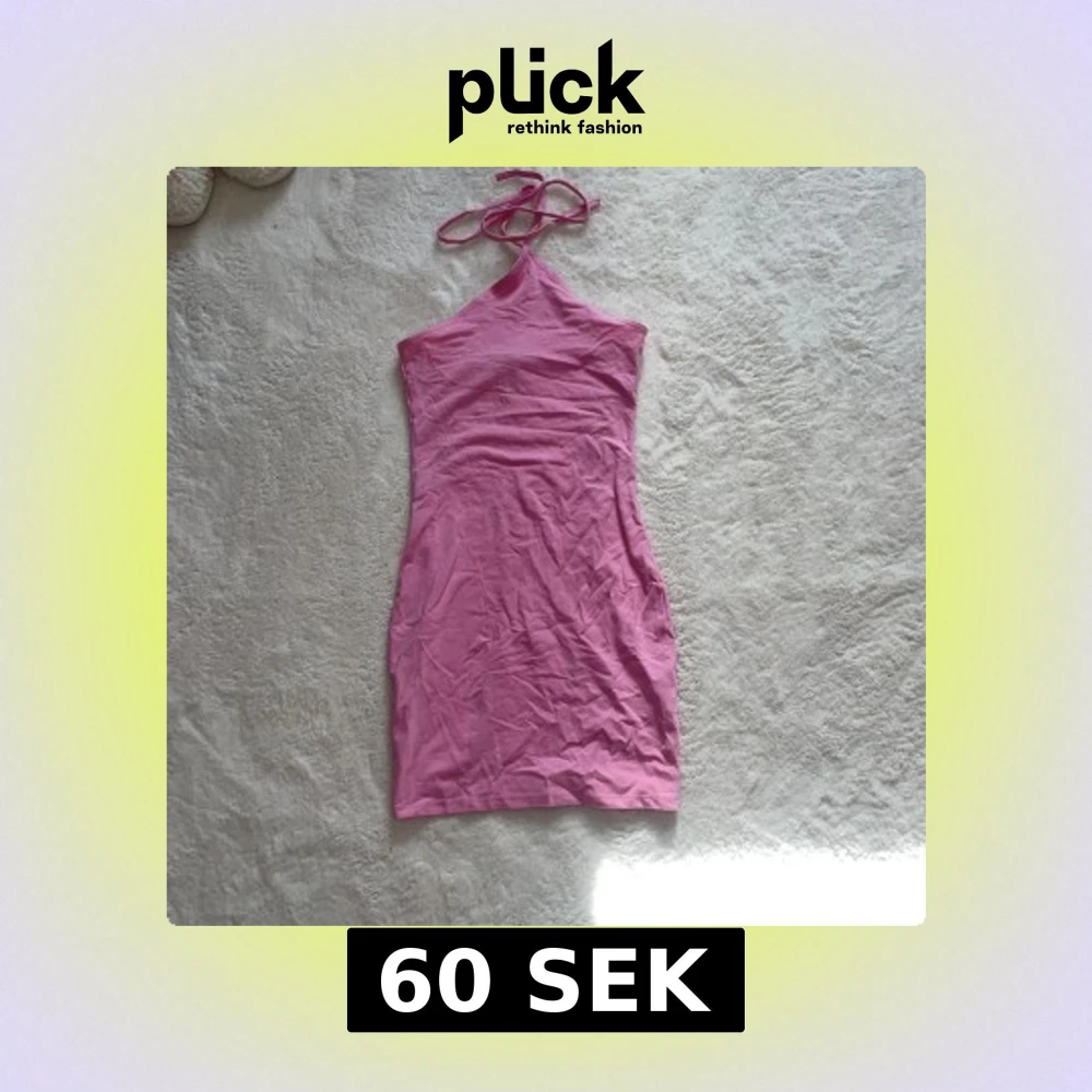 Snygg rosa axelbandslös klänning i en tight passform. Perfekt för sommarens varma dagar. Klänningen har en enkel design med knytband runt halsen.