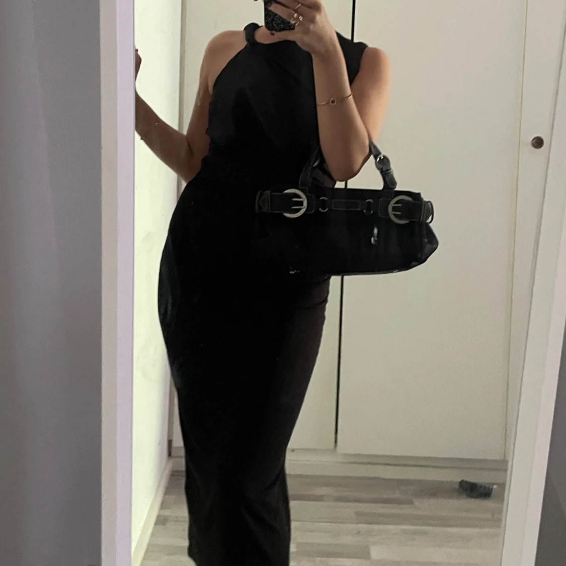 Såå fin och smickrande svart lång klänning. Klänningen är använd endast en gång och i helt nytt skick!