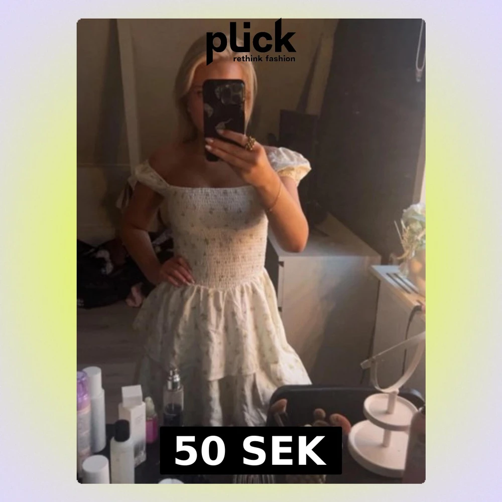 Supersöt vit kortklänning från H&M med små gula blommor, smockad överdel och puffiga offshoulder-ärmar. Klänningen har volanger i kjolen och är gjord i mjuk bomull, perfekt för sommarens alla tillfällen. Prislappen var kvar tills jag testade den för bild - då åkte den av 😅