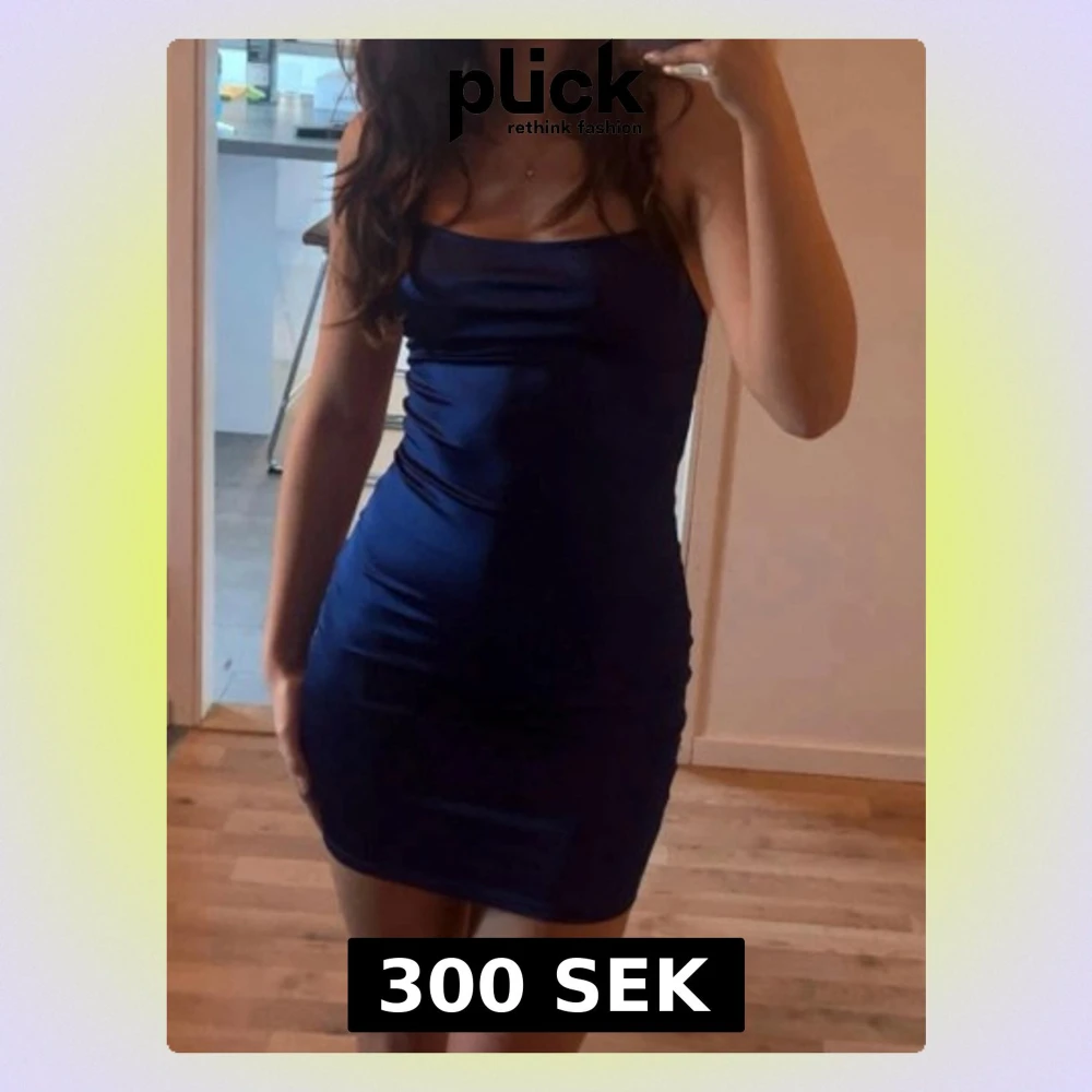 Snygg marinblå kort klänning från H&M Divided med smala axelband som korsas i ryggen. Klänningen har en figurnära passform och är tillverkad i ett glansigt material som ger en lyxig känsla. Materialet är däremot stretchigt och klänningen passar perfekt till olika festligheter🥰