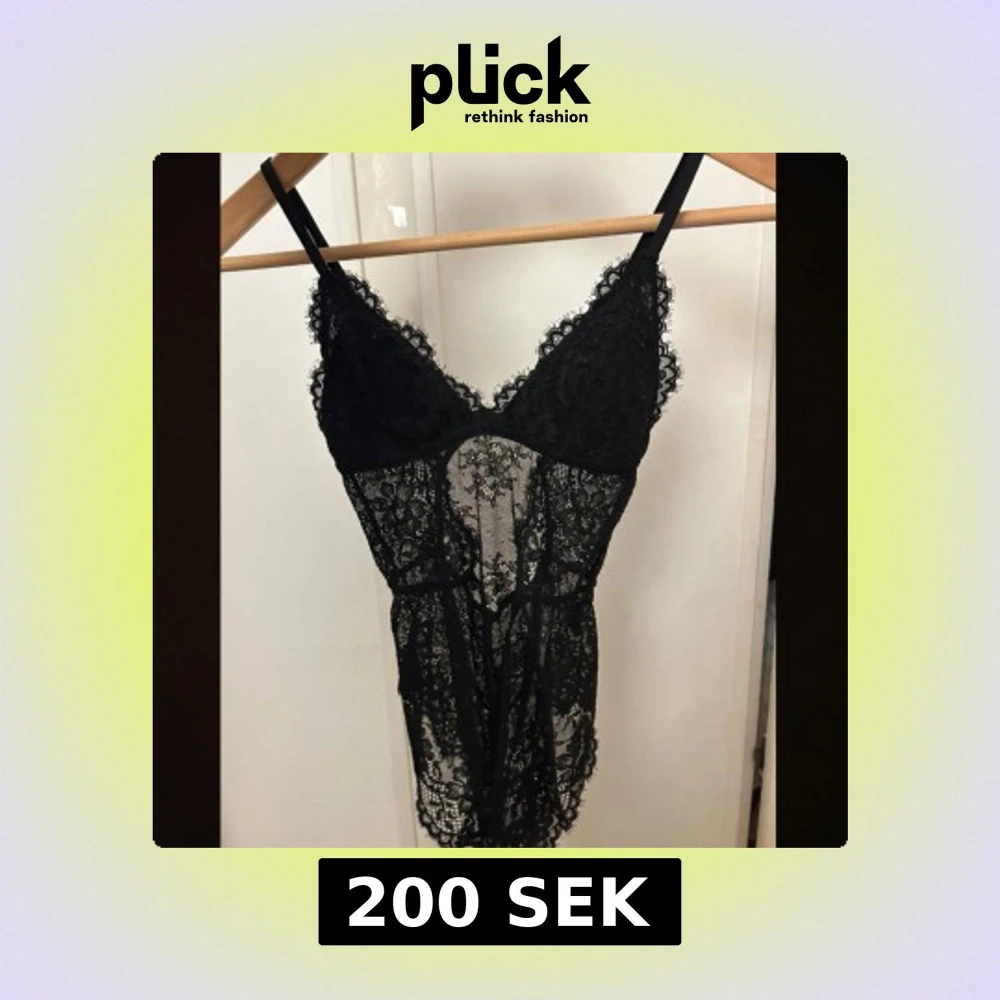 Supersnygg svart spetsbody med v-ringad urringning och tunna axelband. Bodyn är genombruten med blommigt spetsmönster och har en figurnära passform som framhäver midjan. Perfekt för dig som gillar en lite mer vågad och trendig look.
