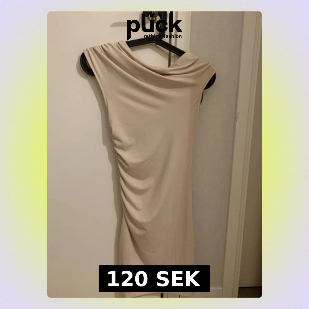 En beige klänning från hm i storlek Xs. Har veckat tyg på ena sidan i midjan och på axeln. Jätte snygg klänning men har inte kommit till särskilt mycket användning för mig.💕 pris gå alltid att diskuteras