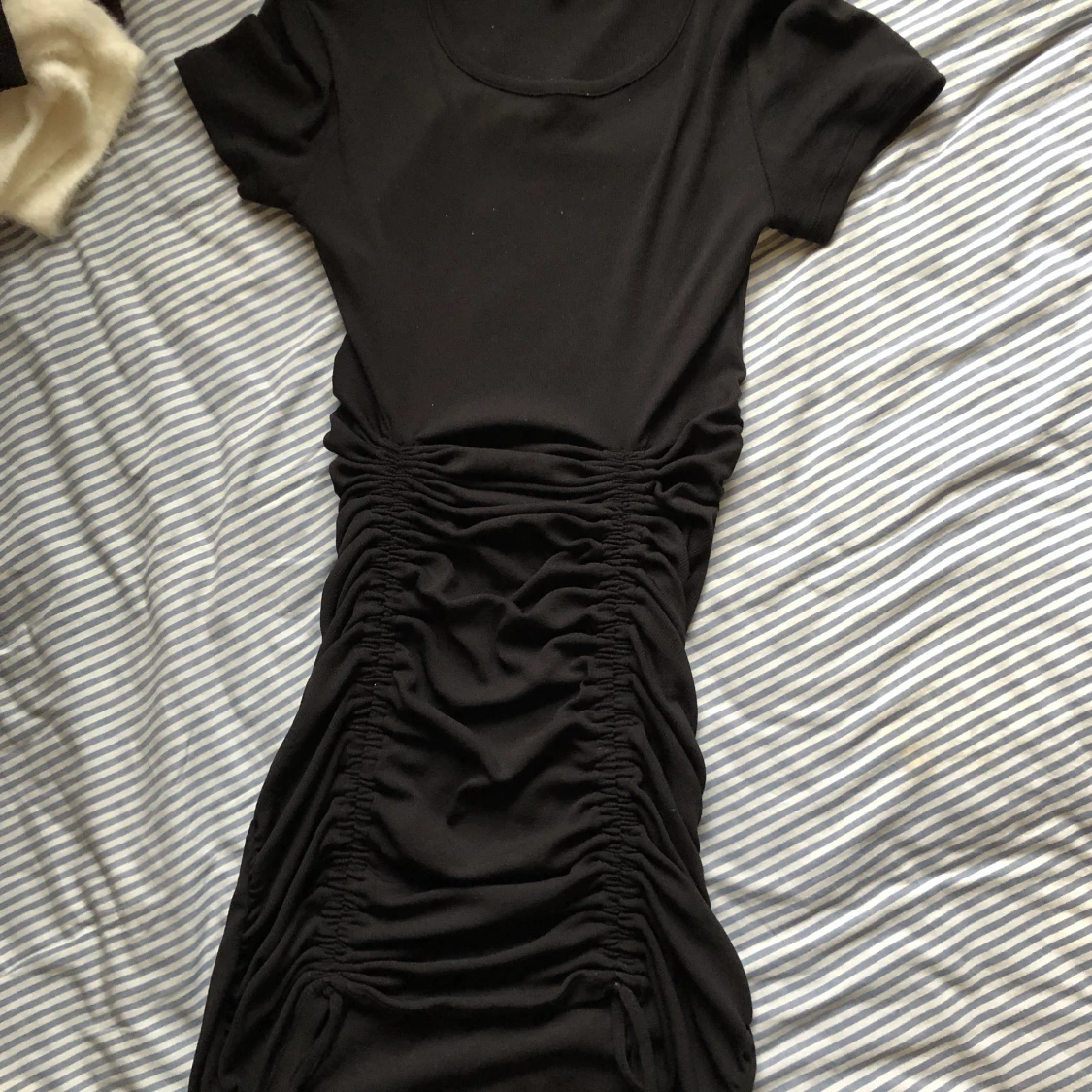 Här är en svart kläning från HM. Den ör gjord av mjukt material och har knuttar framför sig som gör att kläningen kan bli kortare och längre. Har använt det bara 1 gång. Priset går att dikotera!