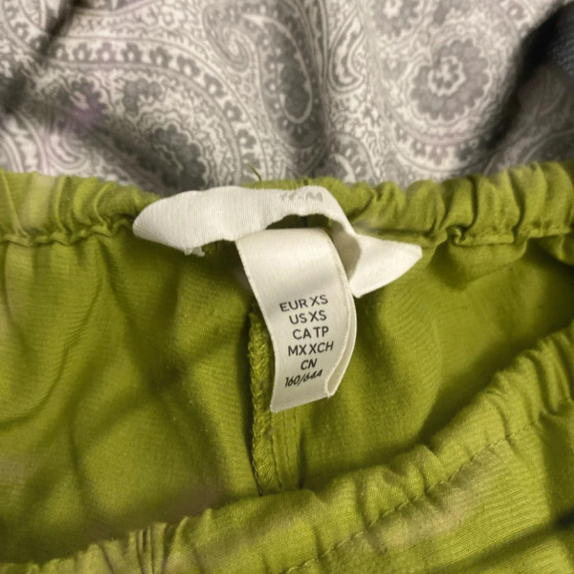 Säljer en flowy ljusgrön linnebyxor från H&M i storlek XS. byxorna har resår i midjan och knytband framtill för en snygg passform. Perfekt för varma dagar med sitt tunna och svala material.