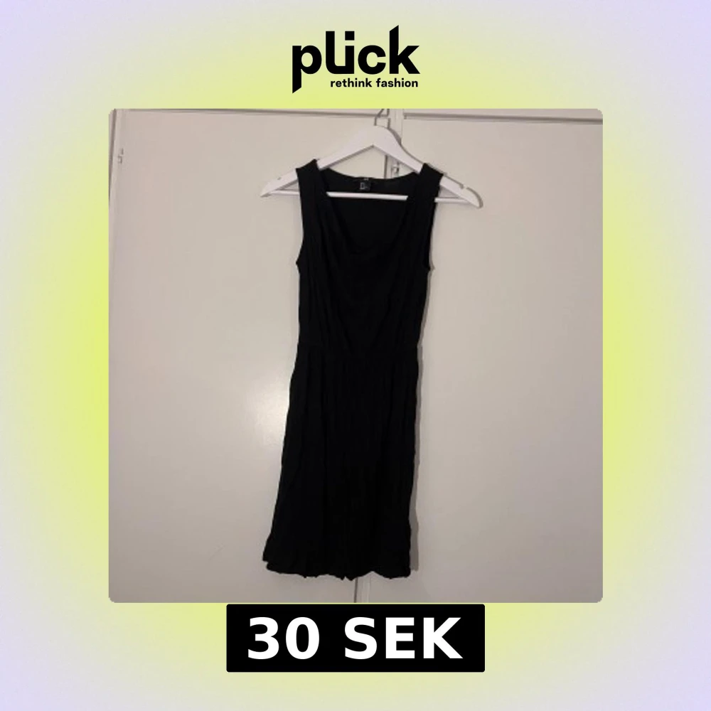 En svart, ärmlös klänning från H&M. Klänningen har en rund halsringning, resår i midjan och är gjort av ett tunt material.