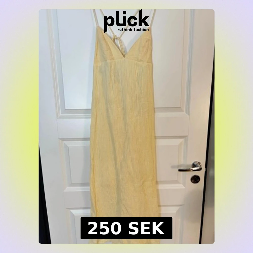 Super söt ljusgul klänning från HM i storlek 32. Med knyte i ryggen. Aldrig använd!