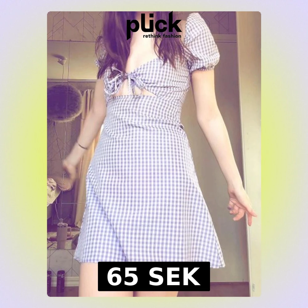 Supersöt lila och vit rutig kortklänning med puffärmar, knyt framtill och liten cut-out under bysten. Klänningen har en feminin siluett och är perfekt för varma dagar. Tillverkad i ett lätt bomullstyg som känns skönt mot huden.
