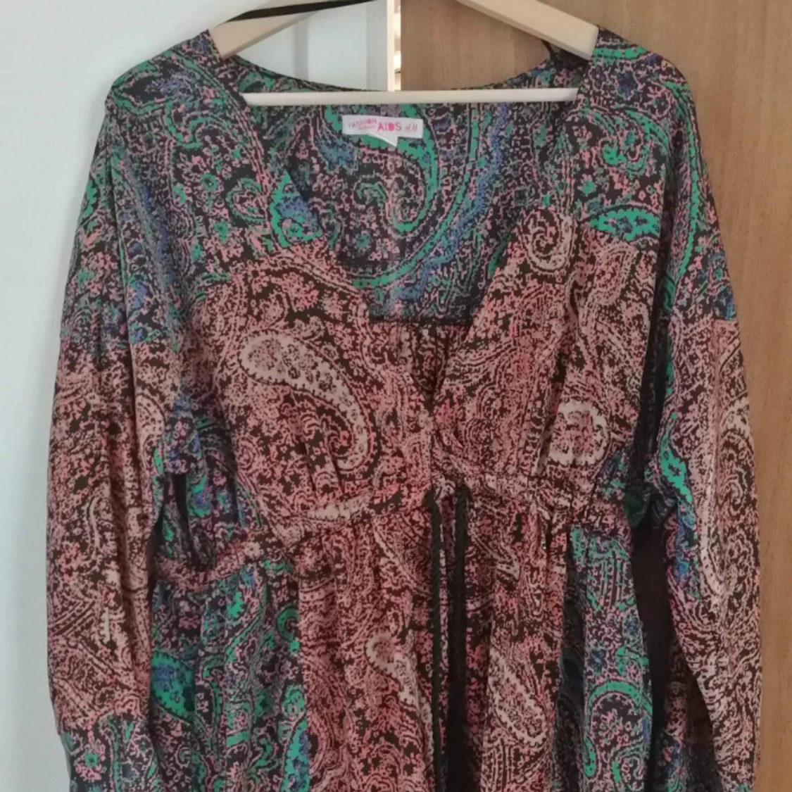 Fin och annorlunda mönstrad klänning i stl 42 från HMs Against aids kollektion. Obetydligt använd. Djur finns i hemmet. Kan skickas mot att köparen står för frakten.