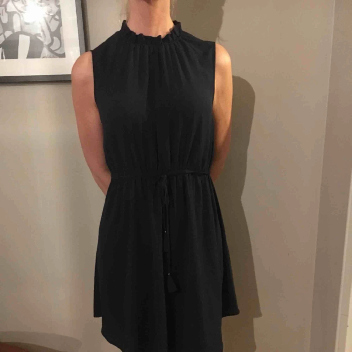 Mörkblå klänning i skirt material med en fin knytning i midjan