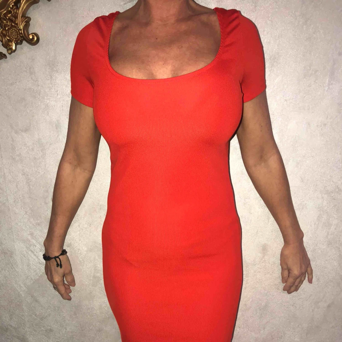 Röd klänning till knäna, använd ett fåtal gånger under sommaren.