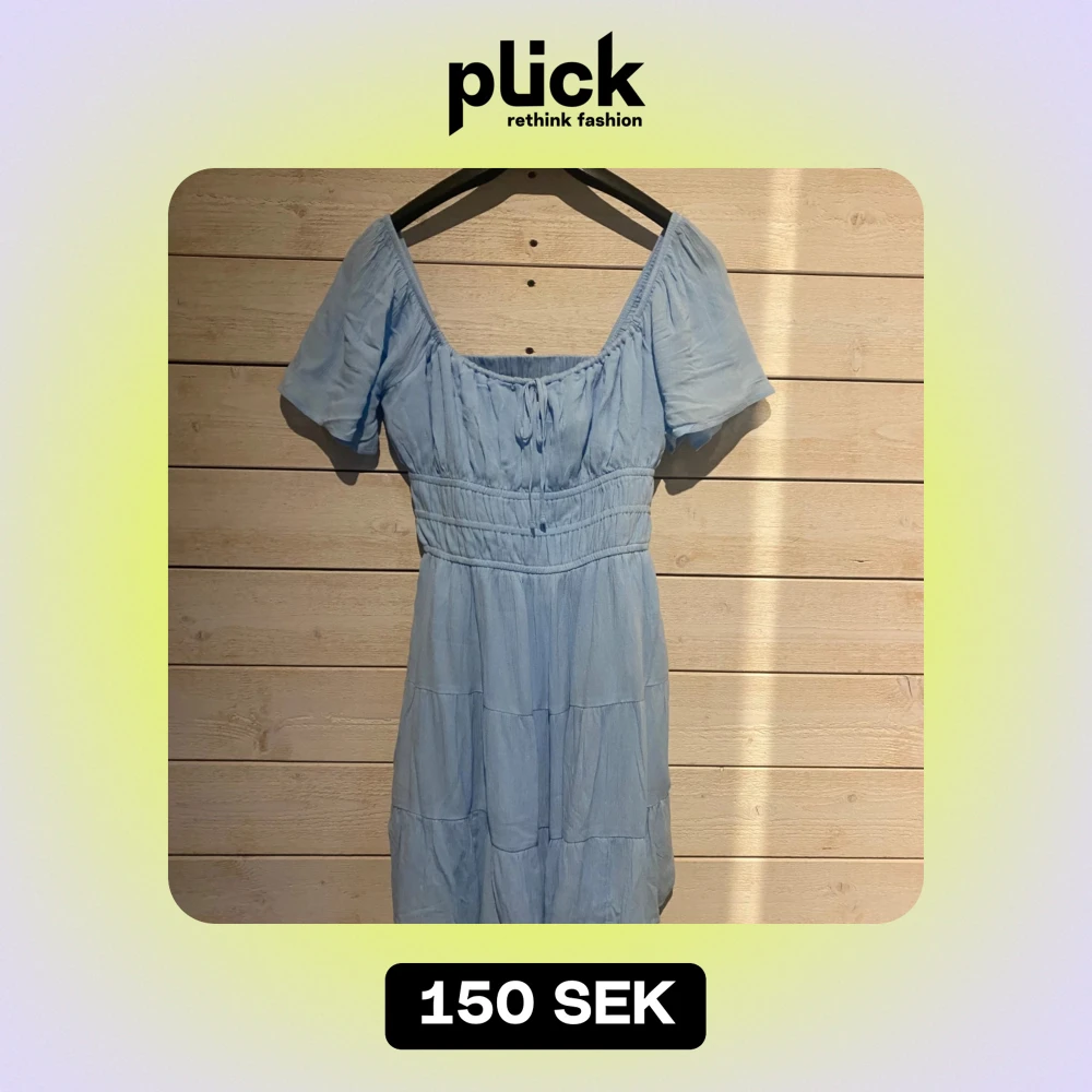 Säljer en superfin ljusblå klänning med korta ärmar och knytning framtill. Klänningen är luftig och har fickor och shorts under kjolen.
