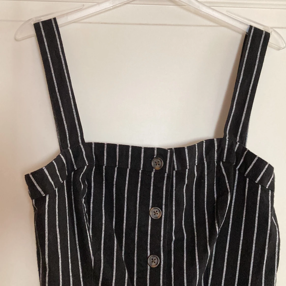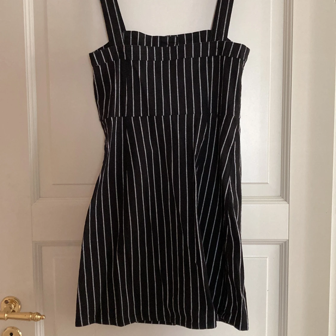 En svart klänning med vita ränder från Hollister🖤🤍 Fint skick! Storlek M. 150kr.