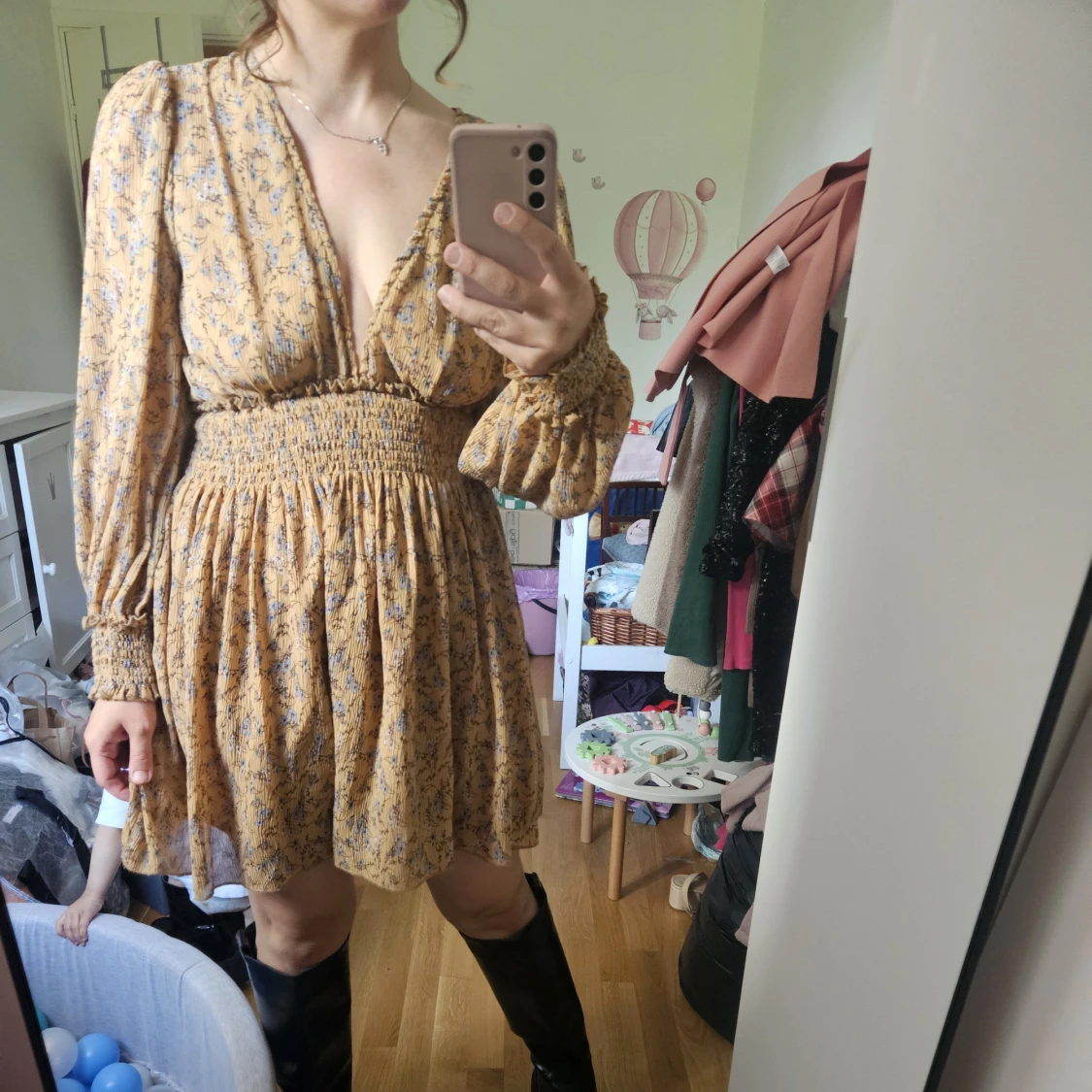 Typ senapsgul superfin klänning som passar höstens färger 🍁🍂 sparsamt använd. Storlek 38
