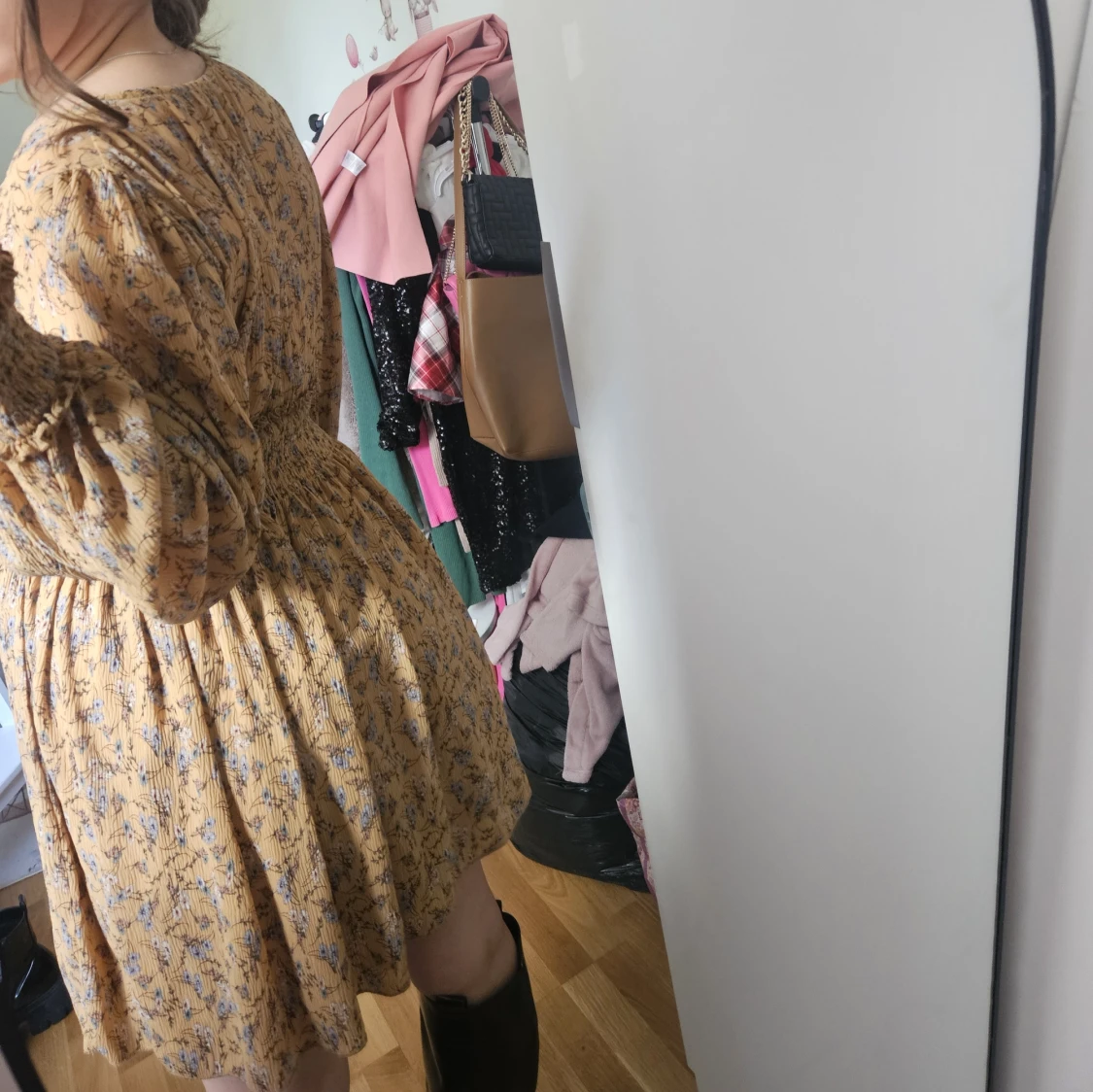 #höst #klänning #långärmad #senapsgul #blommig #nakd