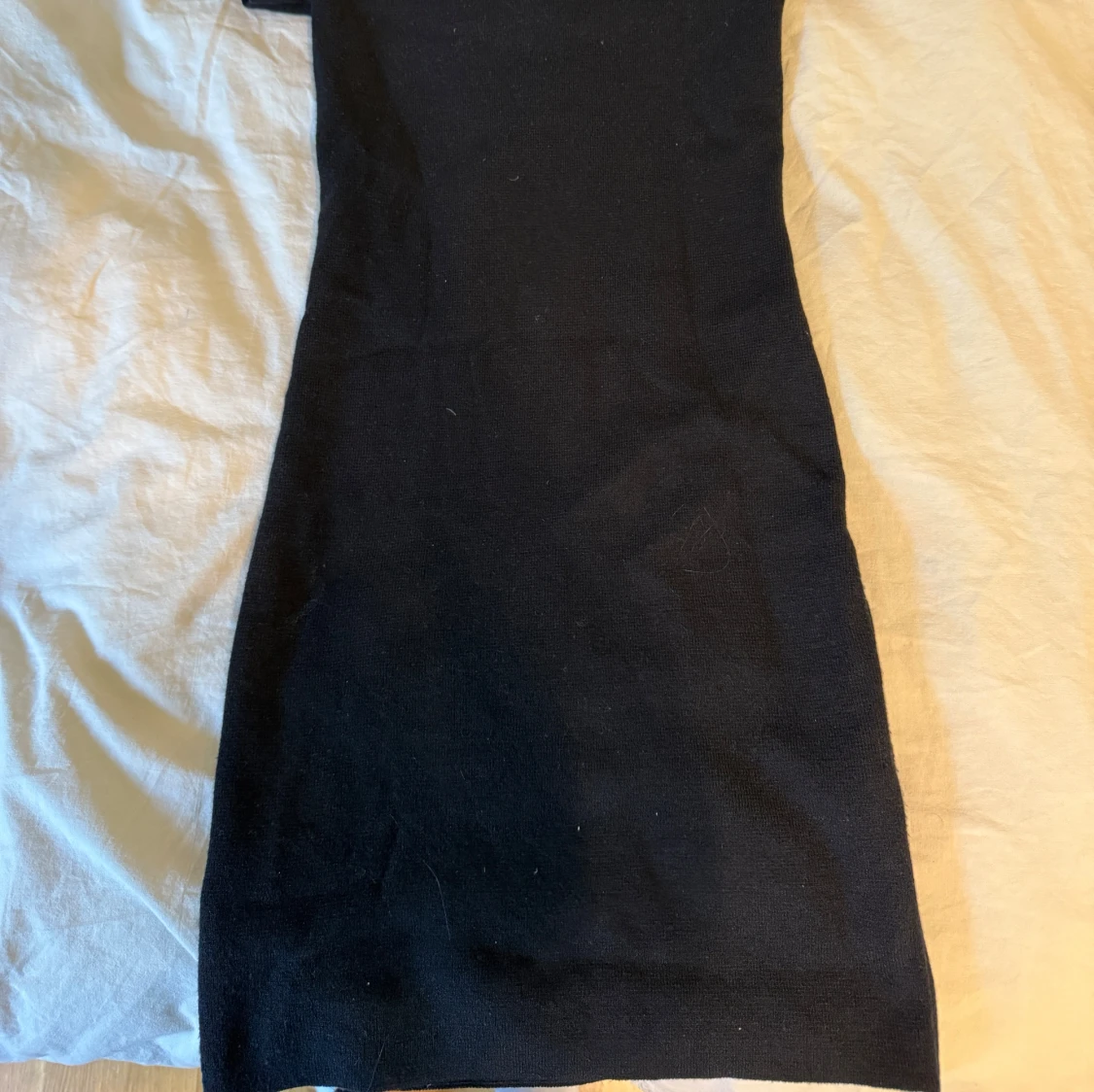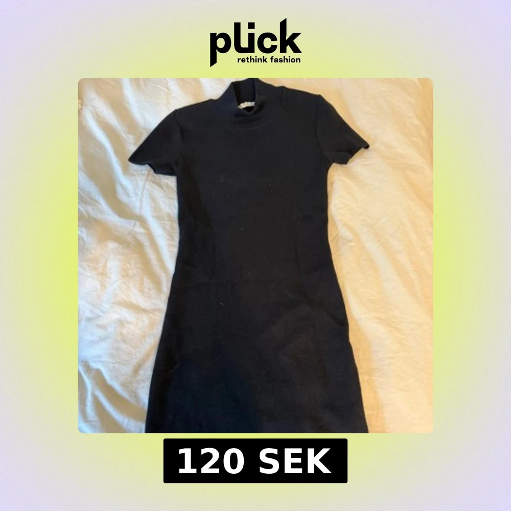 En svart stickad kortklänning med hög hals och korta ärmar. Klänningen har en enkel, rak passform och är perfekt för dig som gillar en stilren look. Materialet är mjukt och bekvämt, vilket gör den lätt att bära hela dagen.