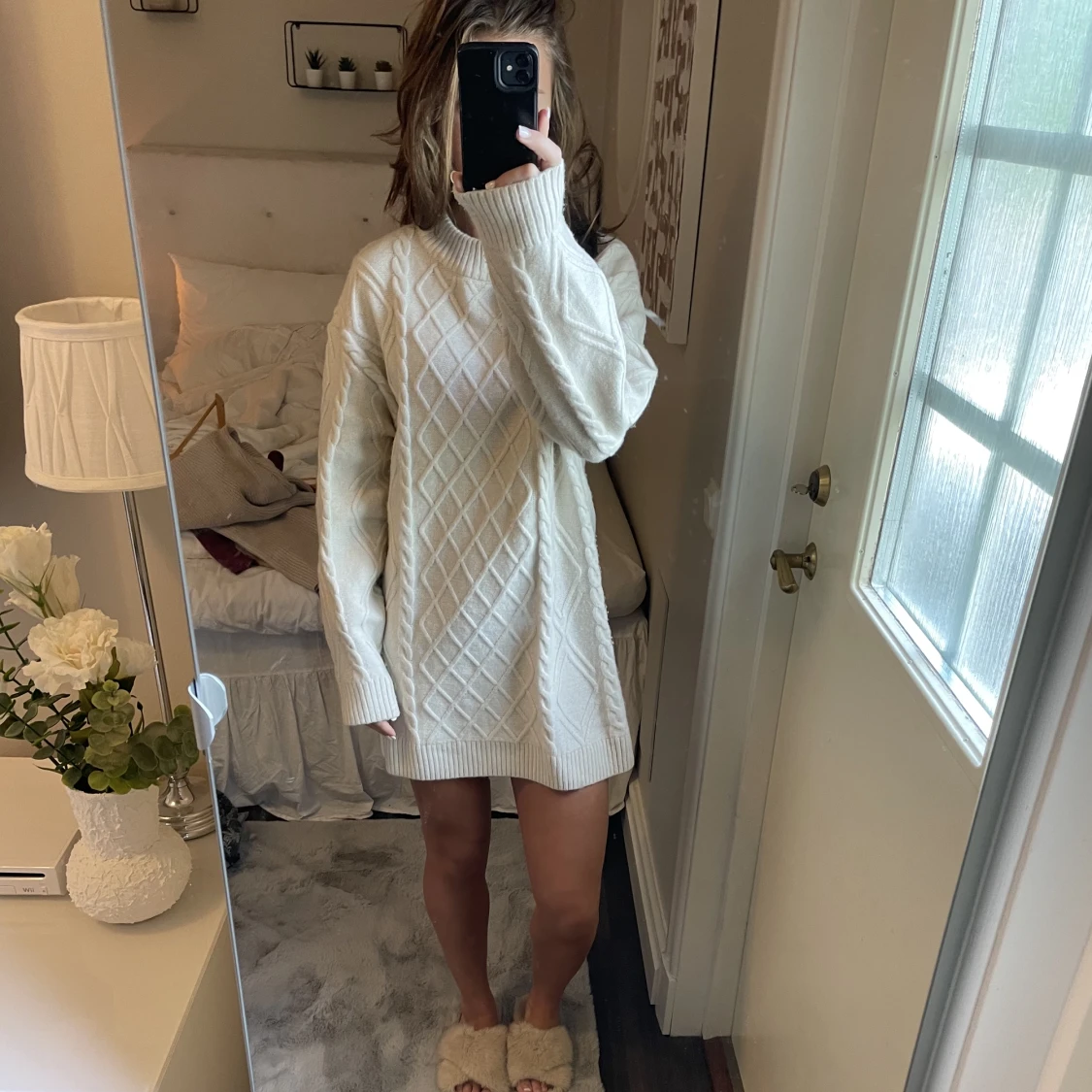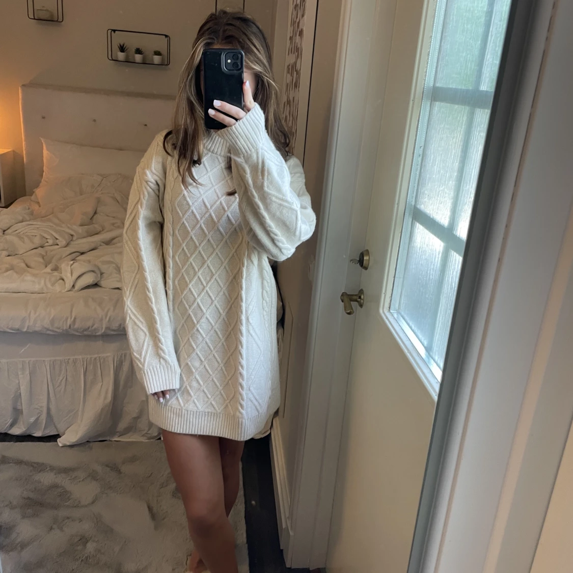 Intressekoll på denna AS SNYGGA stickade klänning i en creme vit/ beige färg, perfekt till hösten!! Är inte 100% på att jag vill sälja så kom med prisförslag😆💗💗 tryck INTE på köp nu, kontakta mig först🙌🏻🙌🏻🙌🏻
