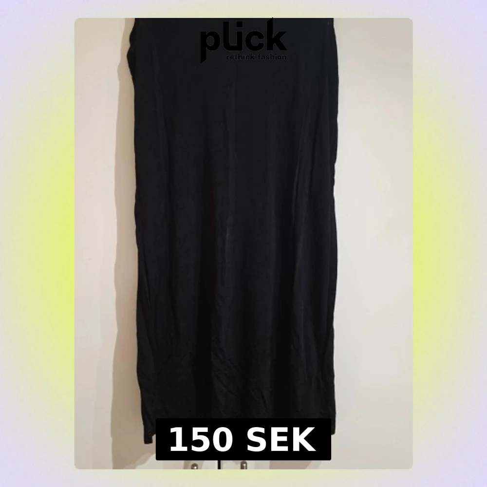 En enkel och stilren svart långklänning från Indiska. Klänningen har rak passform och rund halsringning. Perfekt basplagg att styla på olika sätt. Materialet känns mjukt och följsamt.