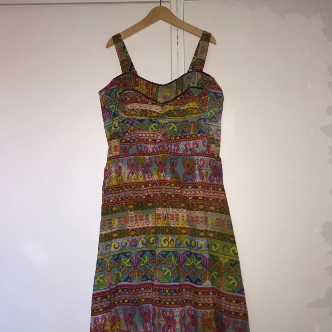 Rolig mönstrad klänning från Indiska. Strl XS/S. Plagget är knappt använt och i gott skick.