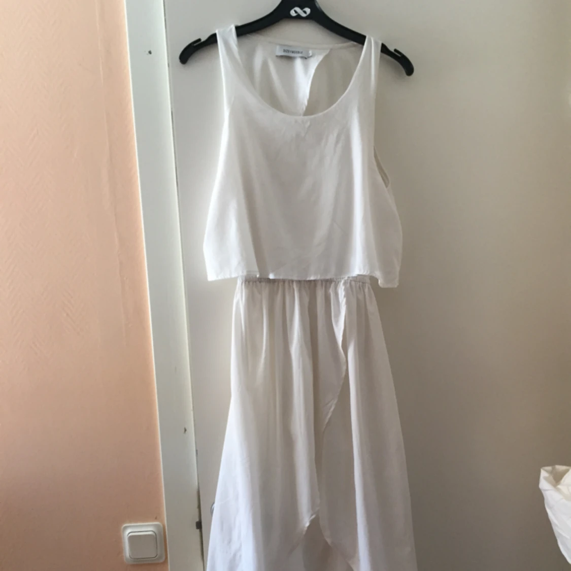 Vit sommarklänning öppen i ryggen och i benet fram.