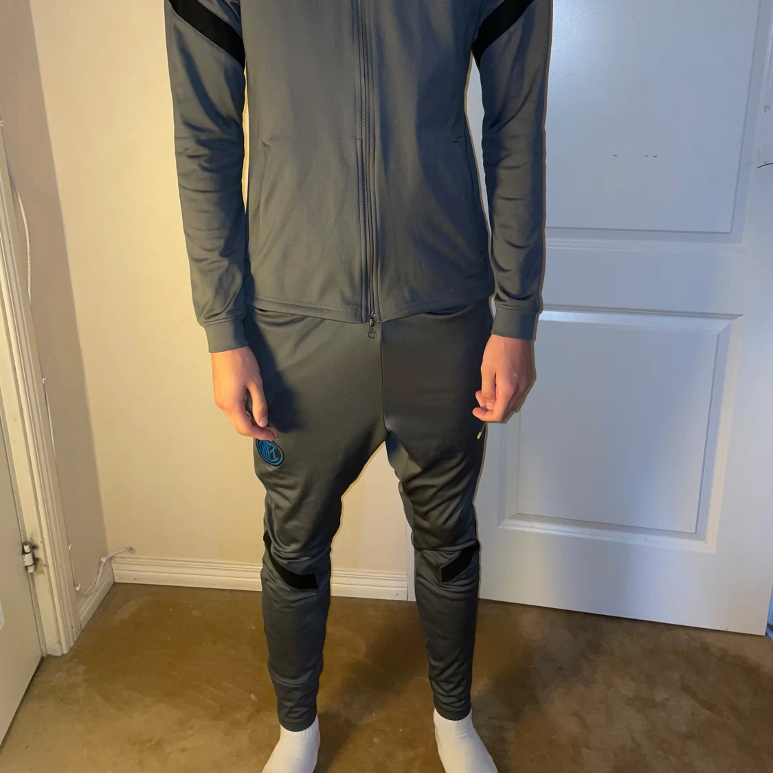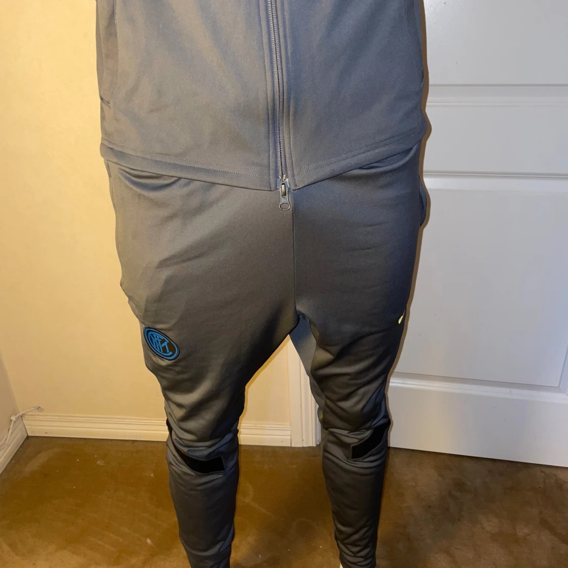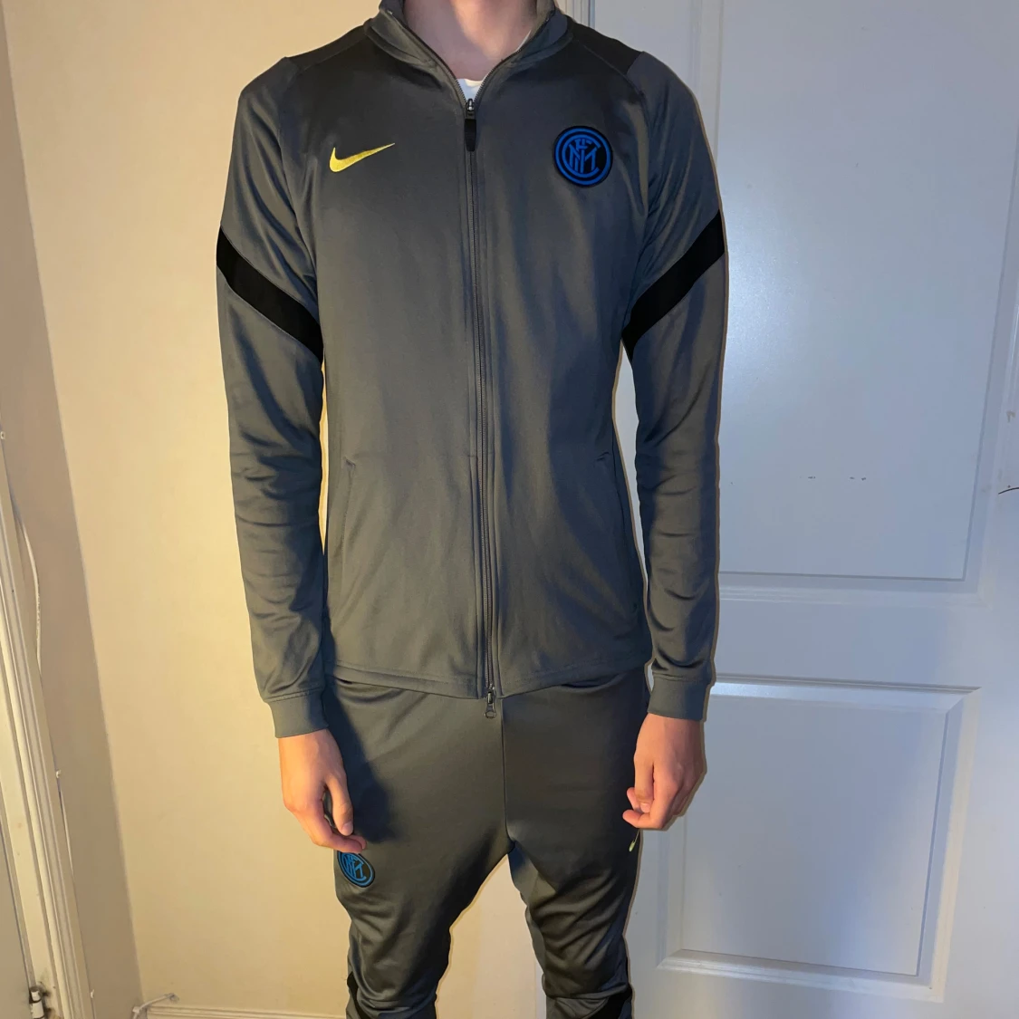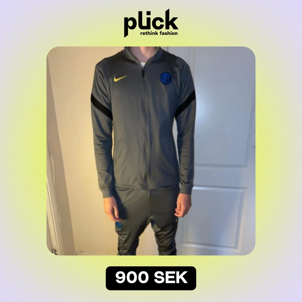 Inter tracksuit från 2021 om jag minns rätt. Ser ut exakt som ny och är i bra skick. Knappt använd i storlek s på byxorna och tröjan.