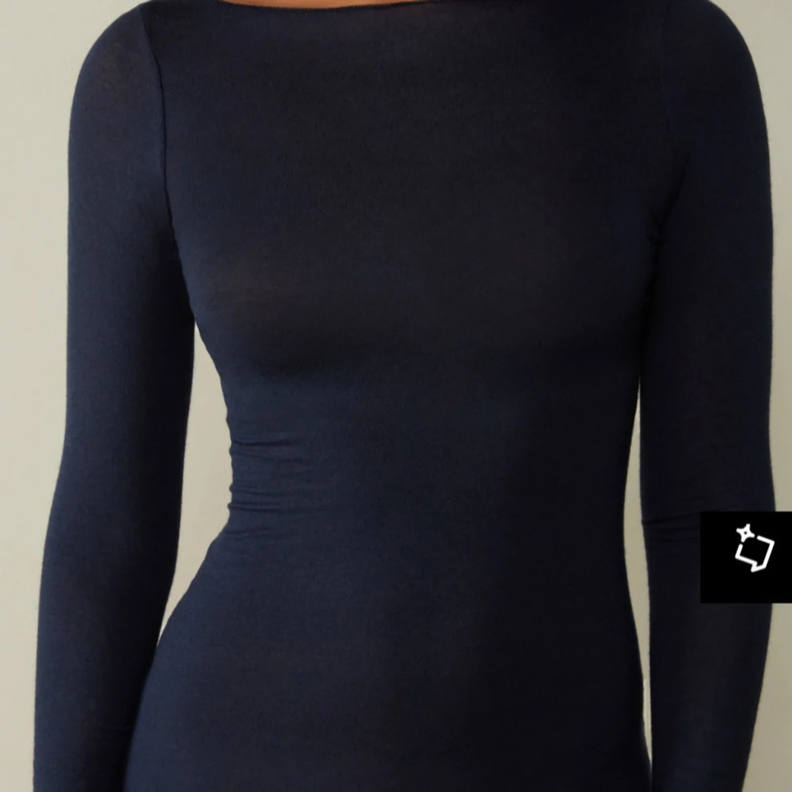 Elegant mörkblå tröja med långärmad design. Perfekt för en stilren look. Tröjan har en tight passform som framhäver figuren.