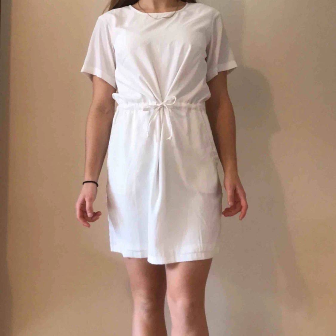 Vit klänning med knyt i midjan från Kenzas märke IvyRevel! Använd 1 gång på min student och den är i jättebra skick helt utan fläckar. Frakt ingår i priset ☀️