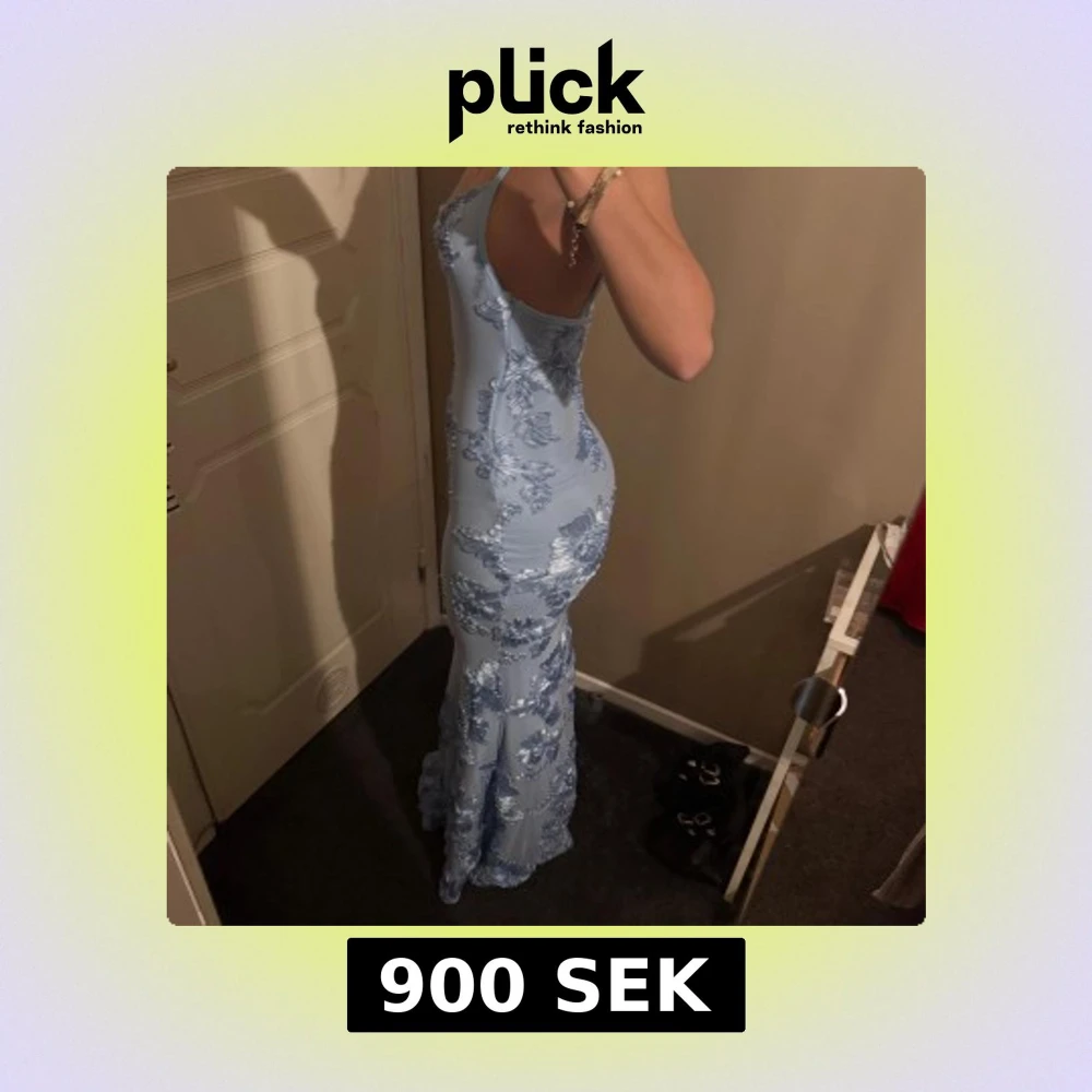 Elegant ljusblå långklänning med blommigt mönster och smala axelband. Klänningen har en tight passform och är perfekt för speciella tillfällen. Köptes för 1200kr ink tull osv… Säljer för 900kr❤️ Kvitto kan skickas privat!