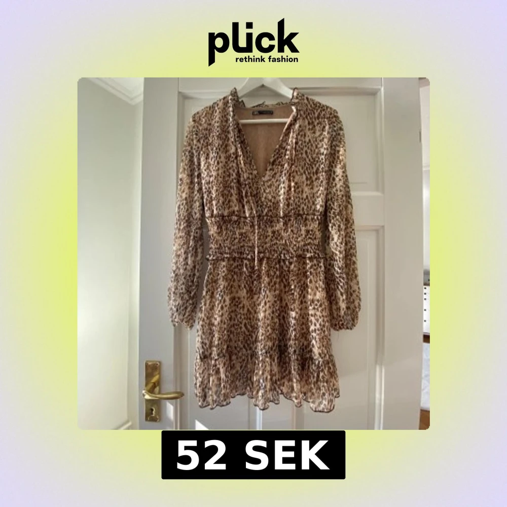Säljer en superfin kort klänning från Zara i storlek xs med leopardmönster i beige och bruna toner. Klänningen har v-ringning, smockad midja och volangdetaljer nertill. Långärmad och tillverkad i ett lätt, transparent syntetmaterial. Den är i bra skick, har en fin passform och är perfekt som bland annat strandklänning🌸Den är en perfekt längd med fina detaljer och är super skön. Skriv om funderingar, priset kan diskuteras och lämna gärna omdöme om köpt😊