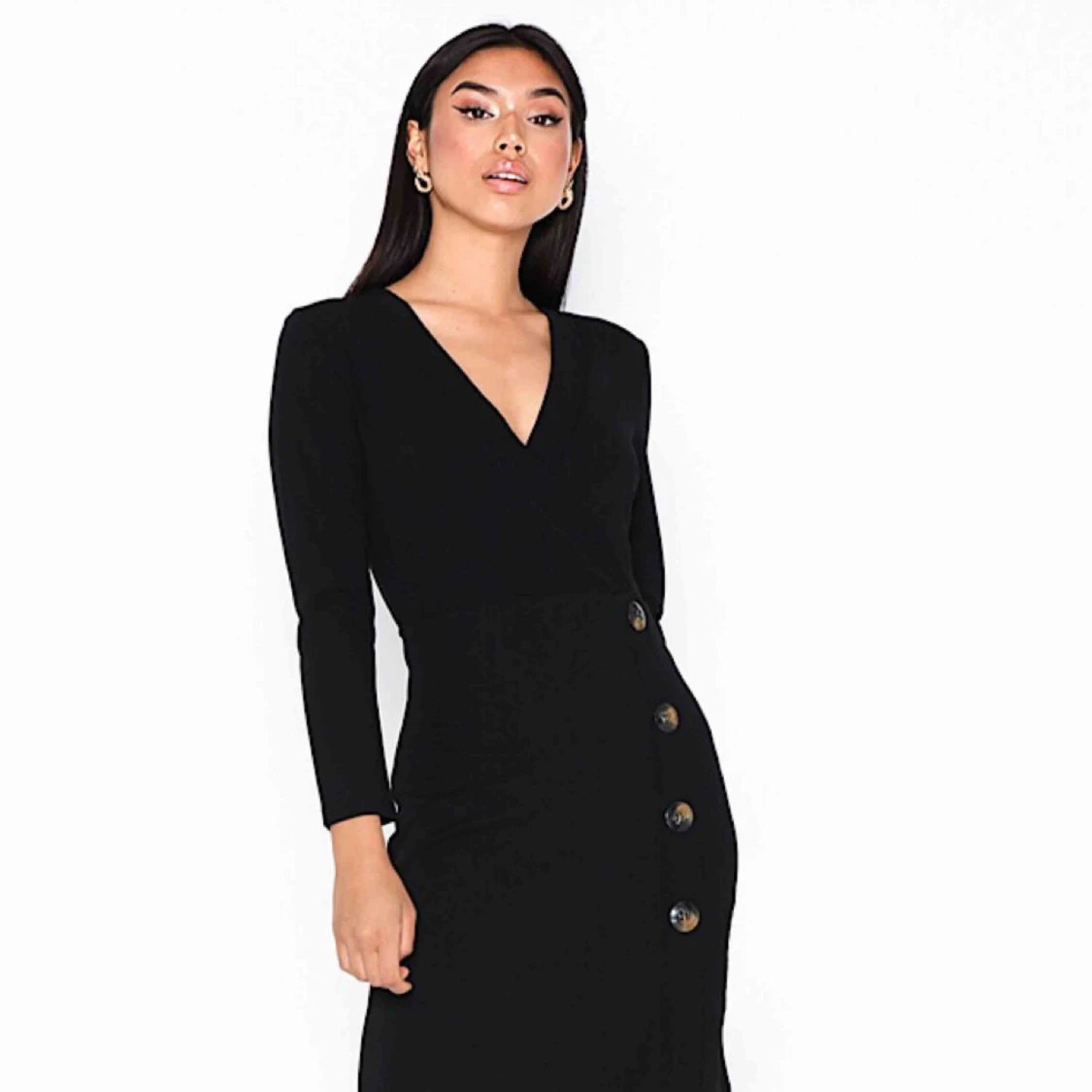Helt ny oanvänd Klänning från Jacqueline de Yong Figurnära passform Långärmad modell Omlottlagd v-ringning Mjuk kvalitet Dekorativa knappar nedtill Storlek XS Ord pris 319:-