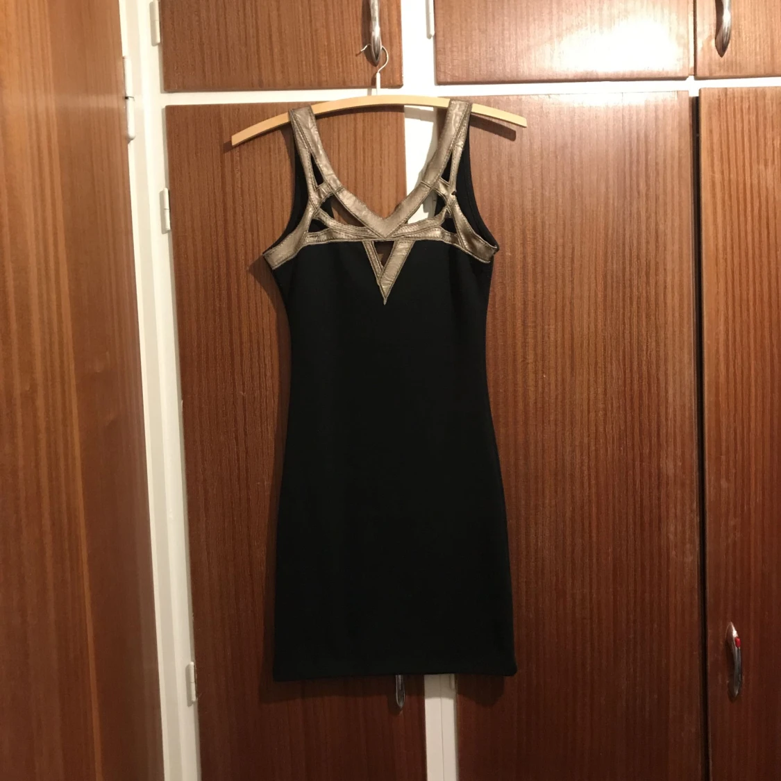 Svart klänning med metallicdetaljer från nelly.com. Använd ett fåtal gånger. Storlek XS