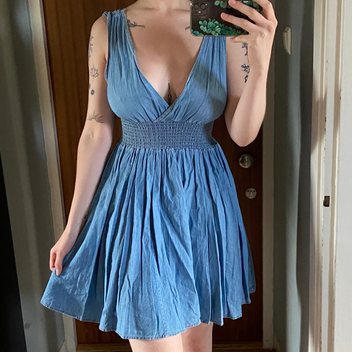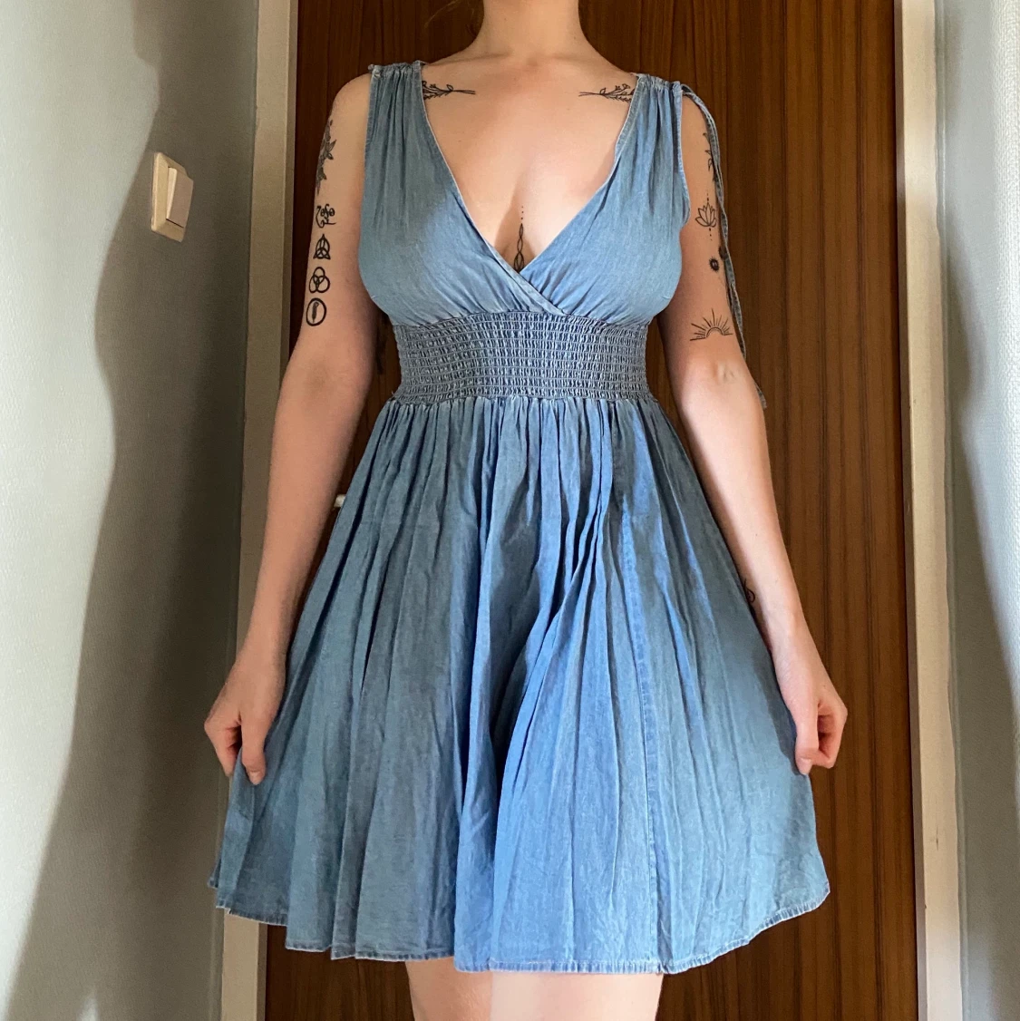 Jättefin klänning som jag inte får användning av. Stretchig i midjan och väldigt skön att ha på sig. Urringad på samma sätt i ryggen 💕
