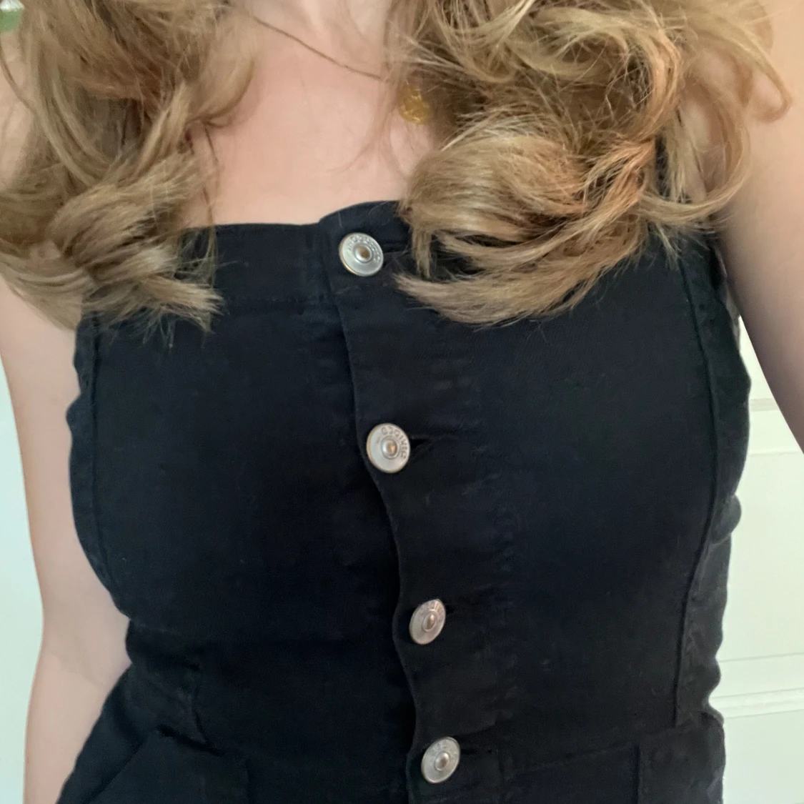 Svart jeansklänning från HM💞 Knapparna går stt knäppa upp och axelbanden går att reglera som man vill ha det! Strl 36, passar mig som S/M