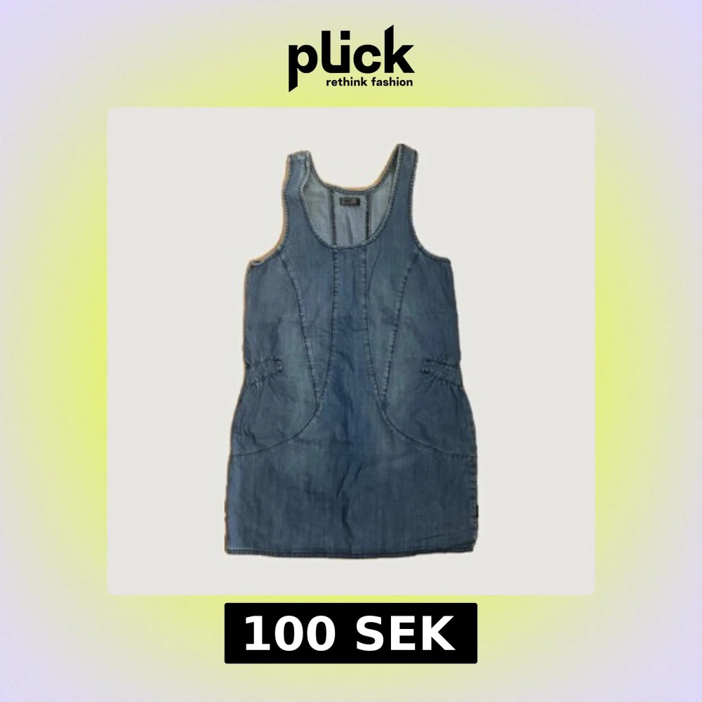 Snygg ärmlös jeansklänning från ONLY i klassisk blå denim. Modellen är kort och har markerade sömmar samt två fickor i sidorna. Perfekt att styla med en t-shirt under eller som den är för en avslappnad look.
