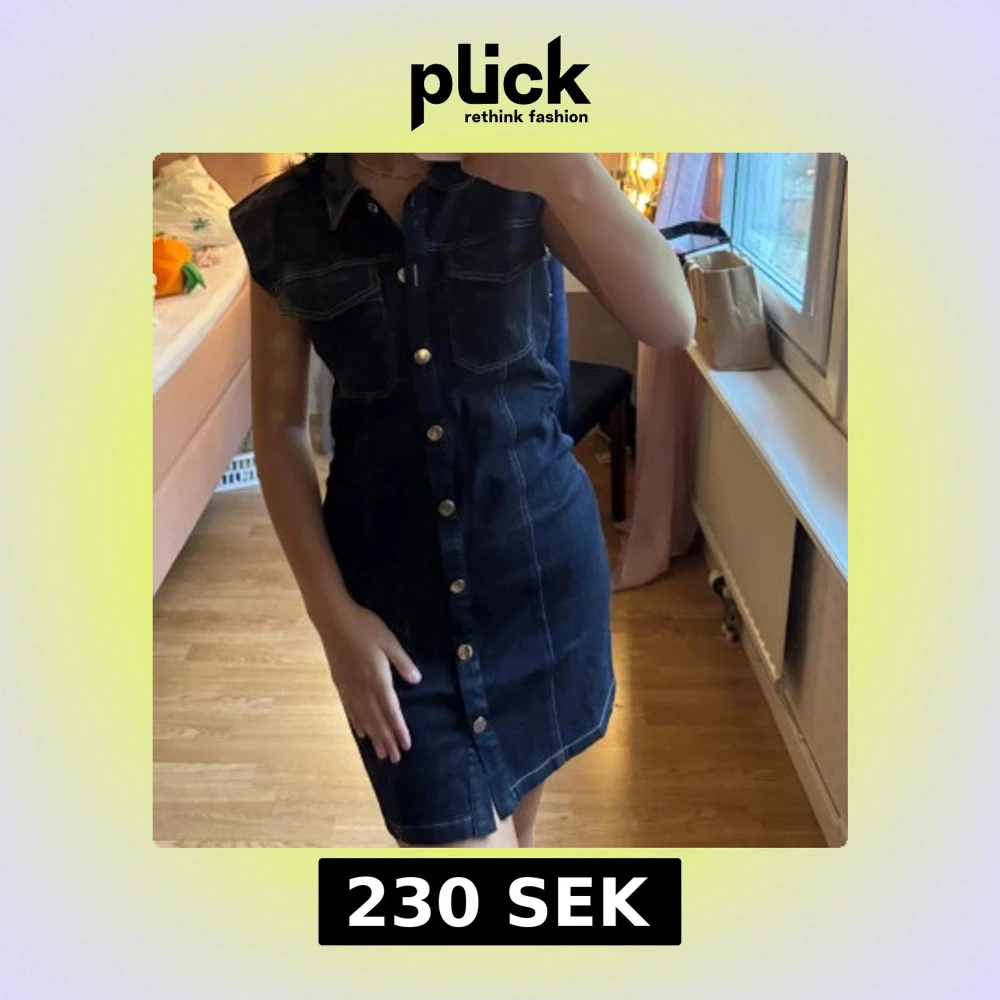 Snygg jeansklänning. Aldrig använd, det står inget märke på och kommer inte ihåg vartifrån de e. Storlek S